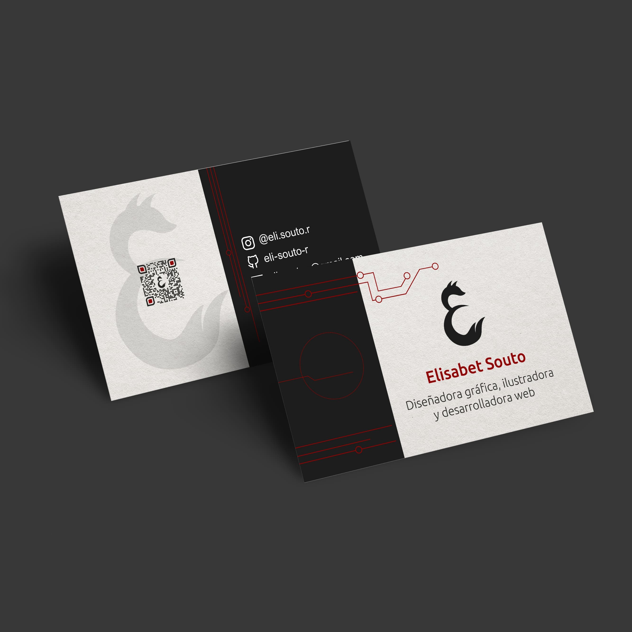 Para este portfolio y para mi imagen personal, realicé este diseño a partir de la combinación del la letra de mi nombre y la silueta del zorro.