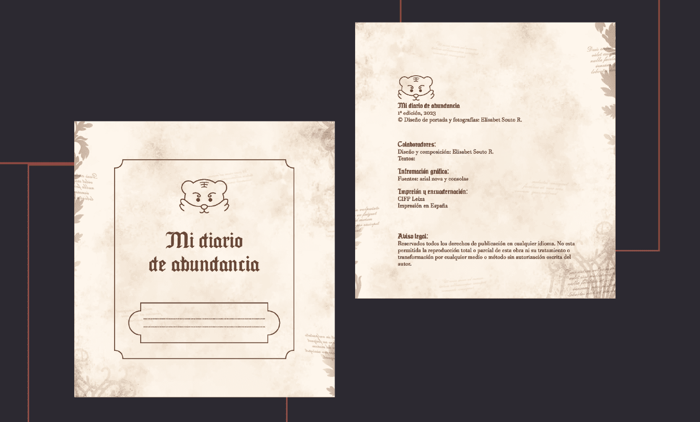 Diseñé un diario de abundancia con estética celta y medieval. Sirvió como base para desarrollar toda una identidad de marca en mi proyecto final.
