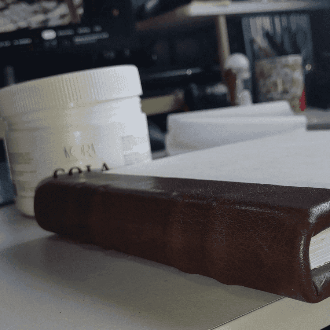 Opté por realizar una encuadernación tradicional utilizando cuero, madera y nervios reales. Además, me encargué de la maquetación del proyecto.