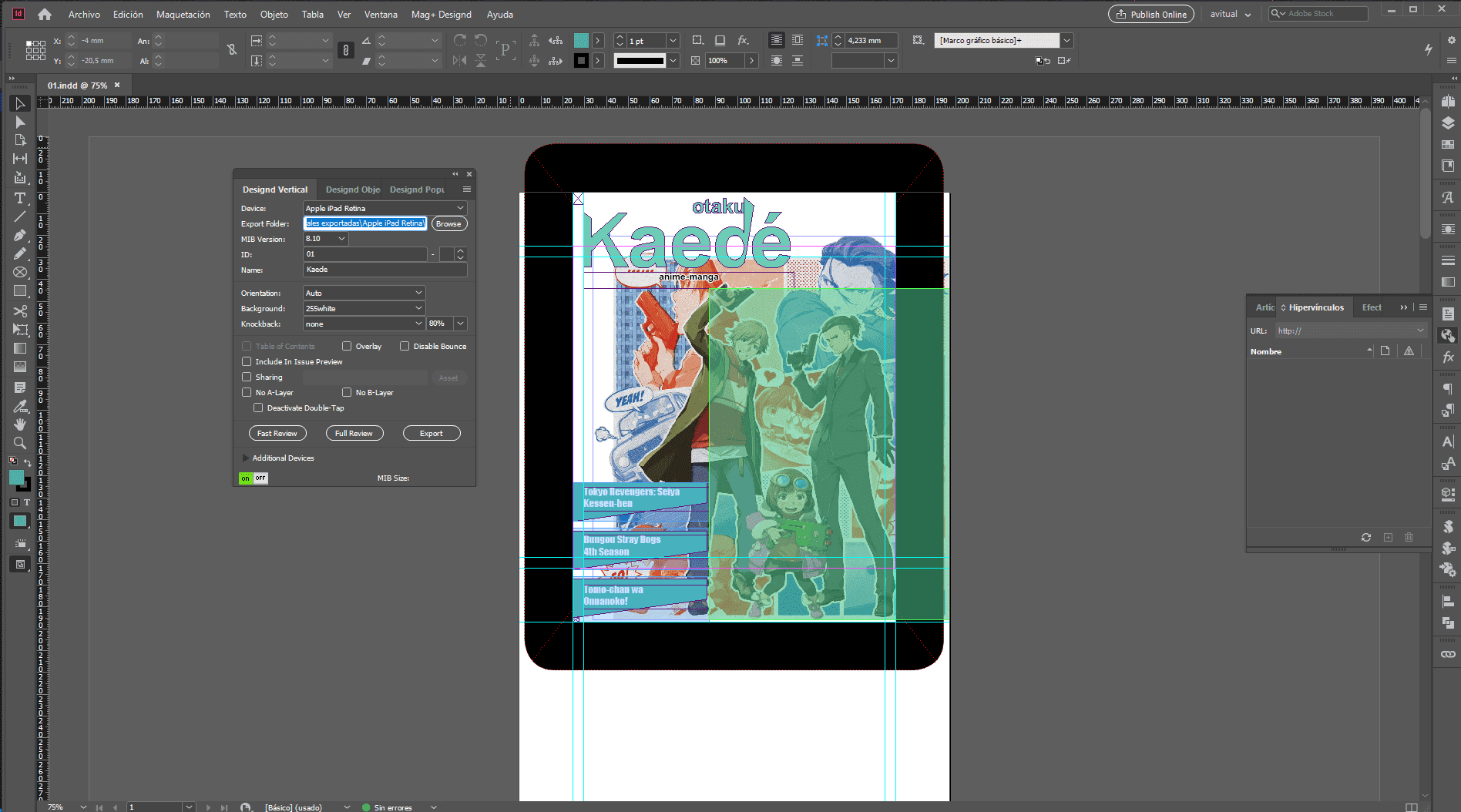 Realicé el diseño y maquetación utilizando InDesign con el complemento de Mag+, implementando funciones para aplicación móvil y iPad.